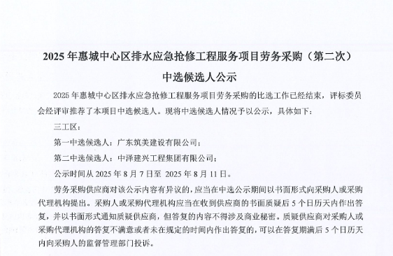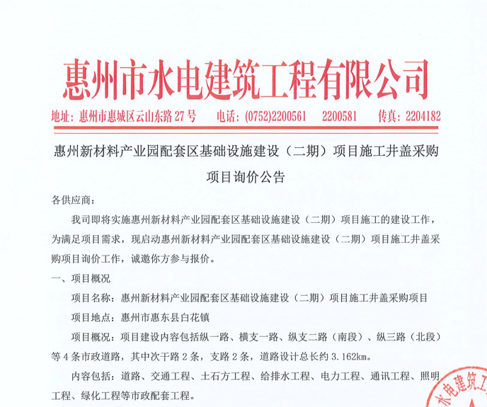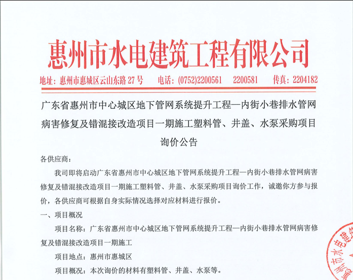 惠州市水電建筑工程有限公司成立于一九六四年四月,隸屬惠州市水務(wù)集團(tuán)有限公司,是一家國有綜合性施工企業(yè),主營水利水電工程、房屋建筑、市政工程等施工業(yè)務(wù)。公司擁有水利水電工程施工總承包一級(jí)、建筑工程施工總承包一級(jí)、市政公用工程施工總承包一級(jí)、公路工程施工總承包三級(jí),公路路基、路面及建筑裝修裝飾專業(yè)承包二級(jí),環(huán)保工程、機(jī)電安裝、河湖整治、輸變電工程專業(yè)承包三級(jí)等經(jīng)營資質(zhì)……